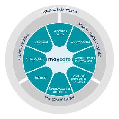 Por eso, MaxCare se formula con los últimos conceptos tecnológicos para maximizar el uso de enzimas como fitasas, amilasas y proteasas, y formular en función de la digestibilidad y retención de nutrientes.