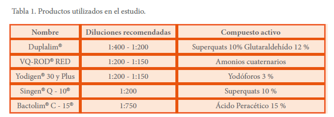 En general los productos utilizados como mínimo lograron disminuir entre 4 y 5 órdenes de magnitud dependiendo del patógeno en la dilución menos concentrada propuesta por el fabricante (Tabla1), indicando que los productos desinfectantes utilizados son una herramienta eficaz para el control bacteriano, siempre y cuando existan las medidas de bioseguridad adecuadas y los desinfectantes sean utilizados en los lugares específicos para los cuales fueron diseñados (pediluvios, rodiluvios, arcos de desinfección, etc.).