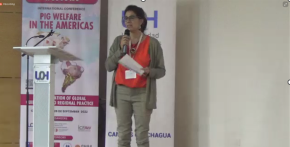El programa de la conferencia siguió los temas del capítulo 7.13 “Bienestar animal y producción porcina” y su objetivo principal fue reunir a conferencistas expertos que hablaron de etología del cerdo, conductas anormales, enriquecimiento ambiental, sistemas de pre- implantación para alojamiento grupal, sistemas de alojamiento en grupo para cerdas y primerizas, procedimientos dolorosos, destete a edades posteriores, bioseguridad y sanidad, presentando así, los temas en un formato lógico y accesible para facilitar una amplia comprensión.