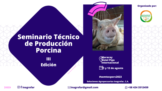 ¡Te invitamos a ser parte del SEMTECPORC 2023! Si deseas más información sobre el evento, para reservar tu cupo, no dudes en contactar por el correo electrónico inagrofar@gmail.com o a través del WhatsApp +58-424-351-2459.