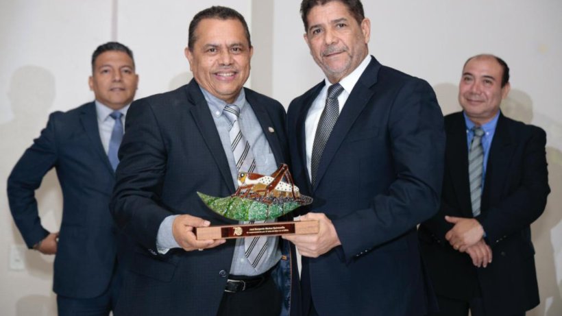 El ministro dominicano recibió un libro que recoge la historia del organismo, durante sus siete décadas de servicio por la sanidad agropecuaria, de manos de su autor, el doctor nicaragüense Celio Humberto Barreto, otrora director ejecutivo de OIRSA e historiador de la institución.