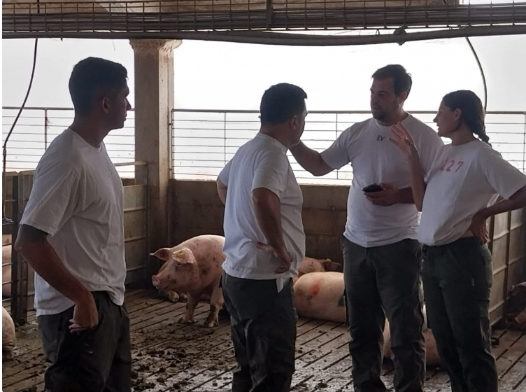 El responsable del Programa de Enfermedades Porcinas del Senasa, Alejandro Pérez, junto con veterinarios de las oficinas locales del sudeste de esa provincia visitó una de las principales granjas afectadas y juntos, revisaron los planes de vacunación que se van a aplicar.