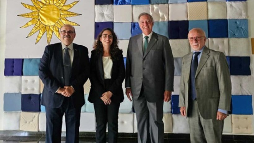 El ministro Fernando Mattos, acompañado por el embajador de Uruguay en Brasil, Guillermo Valles, en el marco de su misión oficial por Brasil, visitó la sede de la Confederación Nacional de Agricultura de Brasil (CNA).