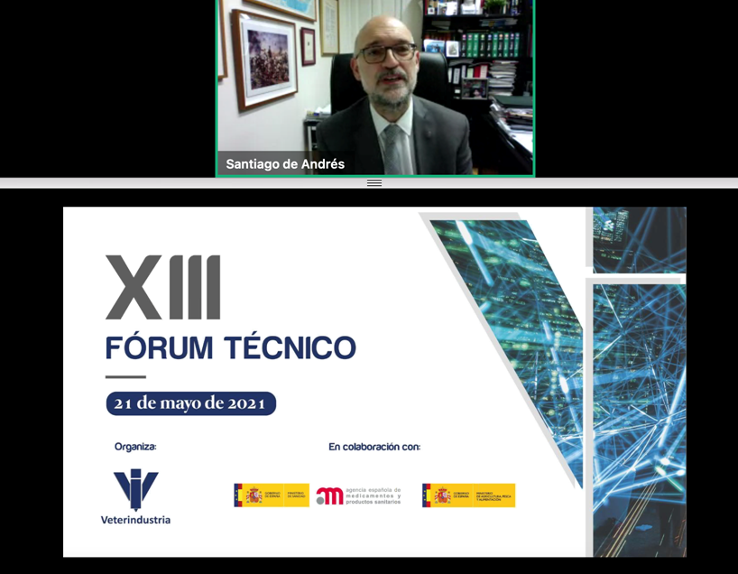 En el XIII Fórum Técnico de Veterindustria organizado en colaboración con la AEMPS y el Ministerio de Agricultura, Pesca y Alimentación (MAPA), y en el que actuó como moderador Pablo Hervás, director técnico de la Asociación, intervinieron por parte del Departamento de Medicamentos Veterinarios que dirige Consuelo Rubio que habló sobre los «Objetivos del Departamento de Medicamentos Veterinarios 2021», Ramiro Casimiro, consejero técnico que disertó sobre las «Novedades en la Nueva Legislación de Medicamentos Veterinarios»; Carmen Sánchez Mascaraque, jefa del Área de Gestión, que junto a Elena Sánchez, jefa del Servicio de Gestión de Procedimientos de Reconocimiento Mutuo y Descentralizado, hicieron una «Introducción a las guías EMA de Armonización de SPC y de la Base de Datos de la Unión»; Cristina Muñoz, jefa del Área Preclínica y Eficacia Clínica que habló sobre el «Plan Nacional Resistencia Antibióticos (PRAN). Acciones principales y futuro» y Marta Martín, jefa del Servicio de Farmacovigilancia, Defectos de Calidad y Comercio Exterior de Medicamentos Veterinarios de expuso lo relativo a la «Farmacovigilancia Veterinaria. Actualización y revisión de datos del 2020».