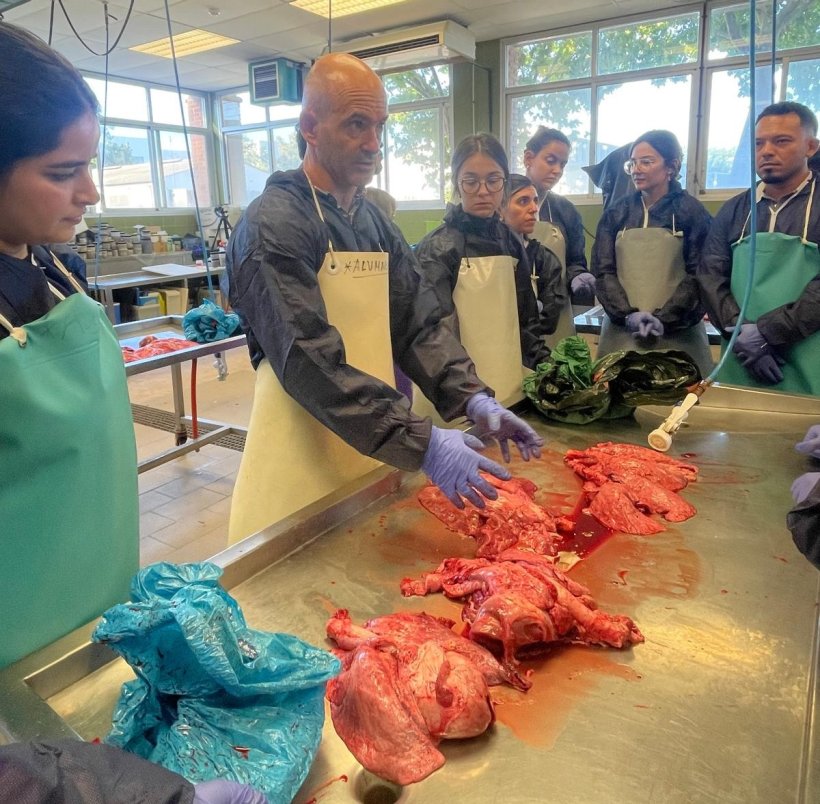 El primer taller, desarrollado en la Facultad de Veterinaria de la Universidad de Zaragoza, permitió a los alumnos enfrentarse a un ejercicio de gran valor diagnóstico: la valoración de lesiones pulmonares.