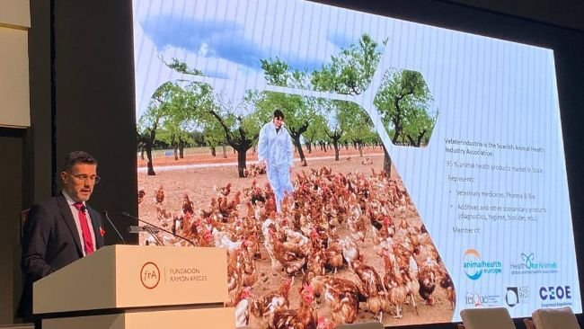 La primera jornada finalizó con la Mesa Redonda «Oportunidades y retos de la estrategia One Health para la industria de sanidad animal», en la que intervinieron moderados por Pablo Hervás, director técnico de Veterindustria, Manuela García, vicepresidenta segunda del Consejo General de Colegios Oficiales de Médicos de España y miembro del Comité Coordinador de la Plataforma One Health; Maite Martín, decana de la Facultad de Veterinaria de la Universidad Autónoma de Barcelona (UAB) y presidenta de la Conferencia de Decanos y Decanas de Facultades de Veterinaria de España y Ana Isabel de la Torre, doctora en Biología e investigadora del grupo de Epidemiología y Sanidad Ambiental del CISA-INIA/CSIC.