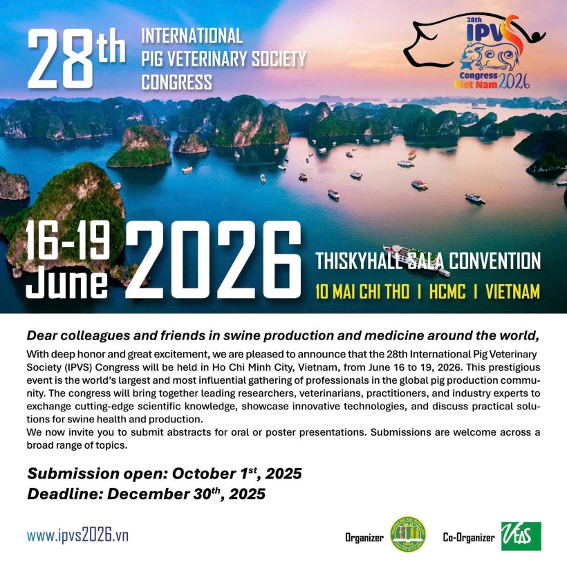 28. Kongres Międzynarodowego Towarzystwa Weterynaryjnego ds. Trzody Chlewnej (IPVS), najbardziej prestiżowe wydarzenie na świecie w dziedzinie zdrowia i produkcji trzody chlewnej, odbędzie się w Ho Chi Minh City w Wietnamie w dniach 16–19 czerwca 2026 r. To globalne spotkanie zgromadzi czołowych przedstawicieli środowisk akademickich, praktyki weterynaryjnej i branży hodowli trzody chlewnej.