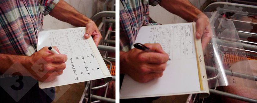 Ale gdzie umieścić wydrukowaną kartę? Oczywiście nie w biurze, z dala od zwierząt! Musi ona znajdować się w miejscu, w którym mają miejsce zdarzenia, które należy zarejestrować. Tu właśnie pojawia się problem. Kartka papieru w pomieszczeniu ze świniami nie przetrwa długo: wilgoć, temperatura, woda, muchy, kurz i... świnie.