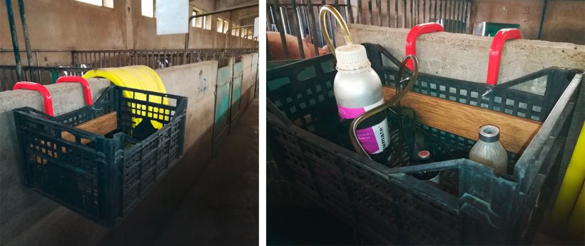 Ta sztuczka polega na stworzeniu pojemnika na sprzęt do sztucznej inseminacji do użytku w obszarze wykrywania rui lub w kojcu. Coraz częściej dochodzi do sytuacji, w których lochy, a częściej loszki, są inseminowane stojąc przed knurem lub, gdy stoją swobodnie i nie znajdują się w blokadzie. Posiadanie pod ręką sprzętu (kateterów, dawek nasienia, żelu, gumowych opasek) potrzebnego do tego zadania nie jest łatwe.