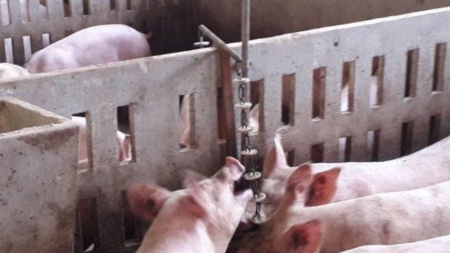 Prosta, łatwa do zbudowania zabawka, która przyciąga prosięta do podajnika z paszą, aby ograniczyć poszczenie po odsadzeniu.