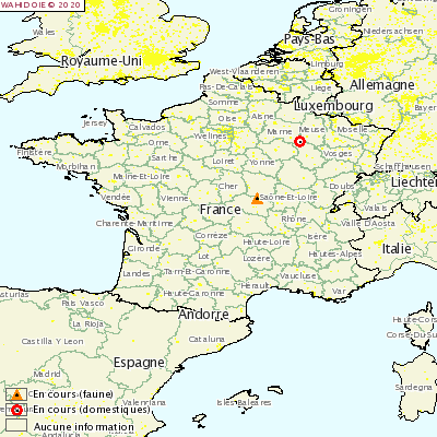 Pierwszy przypadek dotyczy pary dorosłych świń hodowlanych, które uzyskały wynik pozytywny w kontekście profilaktyki. Te dwa zwierzęta wraz z trzema prosiętami trzymano na świeżym powietrzu w Humbecourt (Haute-Marne). Podejrzewa się, że choroba przeniosła się przez dziki; obecne ogrodzenia nie gwarantowały braku kontaktu.
