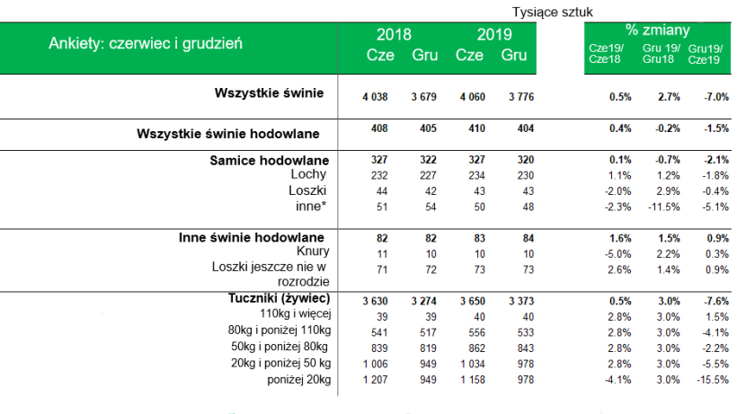 Liczba samic hodowlanych zmniejszyła się o 1% w porównaniu z rokiem poprzednim, a zauważalny był spadek o 12% loch w laktacji i zasuszonych (inne lochy).