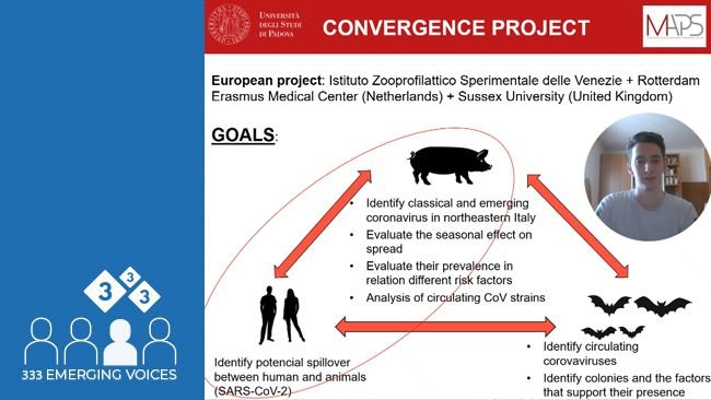 Praca ta dotyczy epidemiologii swoistych i nowo pojawiających się koronawirusów w populacji świń. Praca dyplomowa na Uniwersytecie w Padwie (Włochy), przygotowana pod kierunkiem Michele Drigo.
