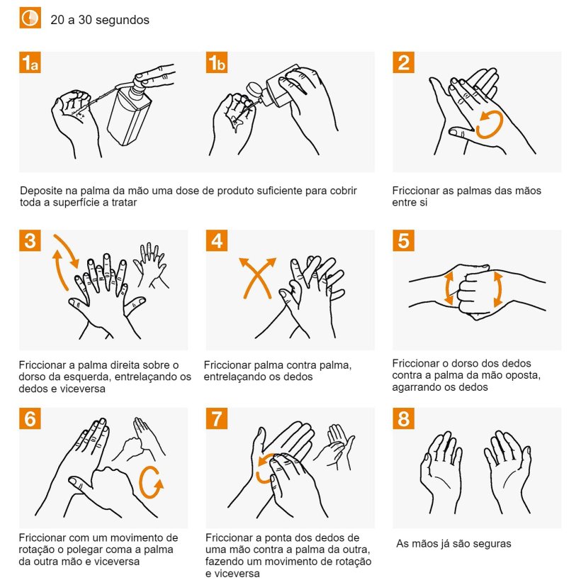 - O uso de uma solução à base de álcool é o método de eleição para a desinfecção das mãos de forma rotineira, se as mãos não estão visivelmente sujas. Se não está disponível uma solução à base de álcool, deve lavar-se com água e sabão.