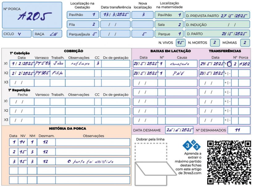 Ficha de porca: registo preciso e essencial para melhorar rendimentos produtivos