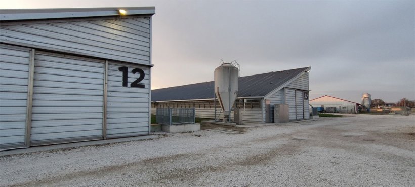 Procurei um arquitecto não especializado no mundo da pecuária, que sugeriu a utilização de materiais muito duráveis e esteticamente agradáveis. A área exterior é fechada, tanto para conter o calor como para o aspecto visual da limpeza. Além disso, temos erva entre os pavilhões, o que ajuda a baixar as temperaturas interiores durante o Verão: um trabalhador externo encarrega-se da manutenção. Depois, do ponto de vista auditivo... os porcos são tão silenciosos que não ouvimos nada do exterior.... só quando os porcos de engorda comem! (fotos 3,4,5). Os problemas de mordedura da cauda são praticamente inexistentes.