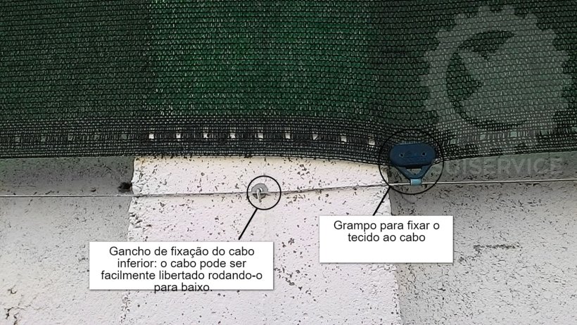 Tensor de cabo para manter a tela esticada.