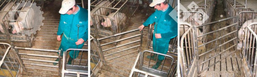 Nas salas de maior tamanho, com diversos corredores que se cruzam, são necessários painéis ou portas para definir um circuito obrigatório entre as diversas filas de jaulas que o varrasco tem que percorrer entre as porcas antes de voltar ao seu próprio parque.