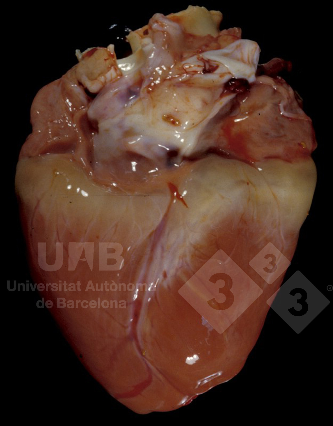 A atrofia da gordura pode ser observada em vários órgãos (coração, médula óssea, etc). A gordura perde a sua opacidade e converte-se num gel aquoso translúcido. Normalmente conhece-se como "atrofia serosa da gordura". Neste caso afecta a gordura da banda coronária do coração. Sucede rapidamente em casos de anorexia, de inanição ou de caquexia.