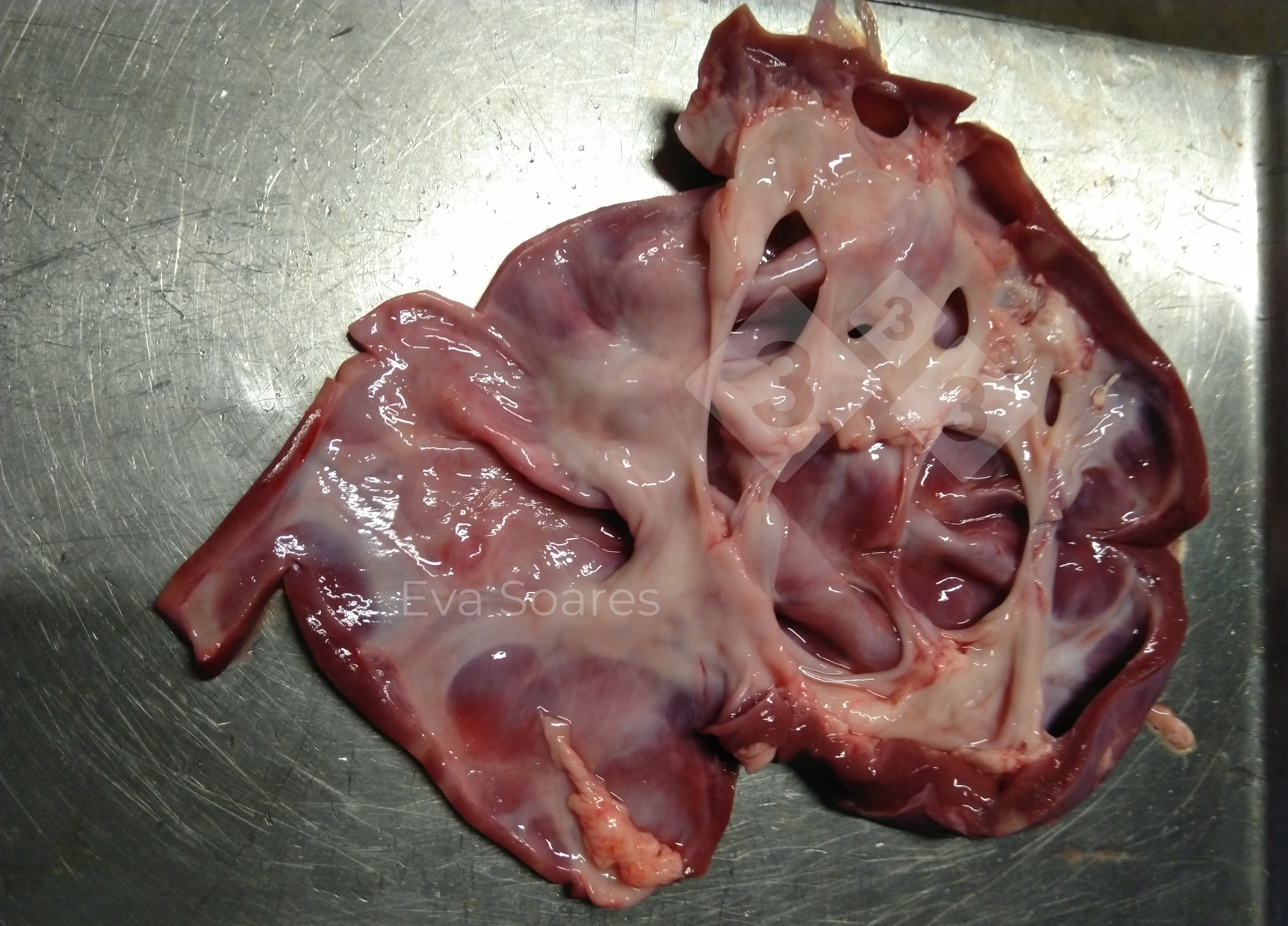 Este processo patológico, encontrado num porco de engorda no matadouro, deve-se a uma oclusão (massa inflamatória ou neoplásica nas proximidades) ou obstrução (cálculos urinários) das vias urinárias, com subsequente dificuldade ou impossibilidade de escoamento da urina. A deficiente implantação dos ureteres na bexiga tem sido também apontada como causa de hidronefrose no porco. Há inicialmente acumulação de urina nos ureteres (hidroureter) a montante do ponto de oclusão ou obstrução. Aqueles distendem-se, aumentando o seu diâmetro e tornando-se a sua parede mais fina. Como a acumulação da urina se faz no sentido distal → proximal, o bacinete acaba por ser atingido pelo processo de distensão pela estase urinária. Posteriormente, a urina retida comprime o parênquima renal que, por vezes, fica reduzido a um milímetro de espessura sob a cápsula.