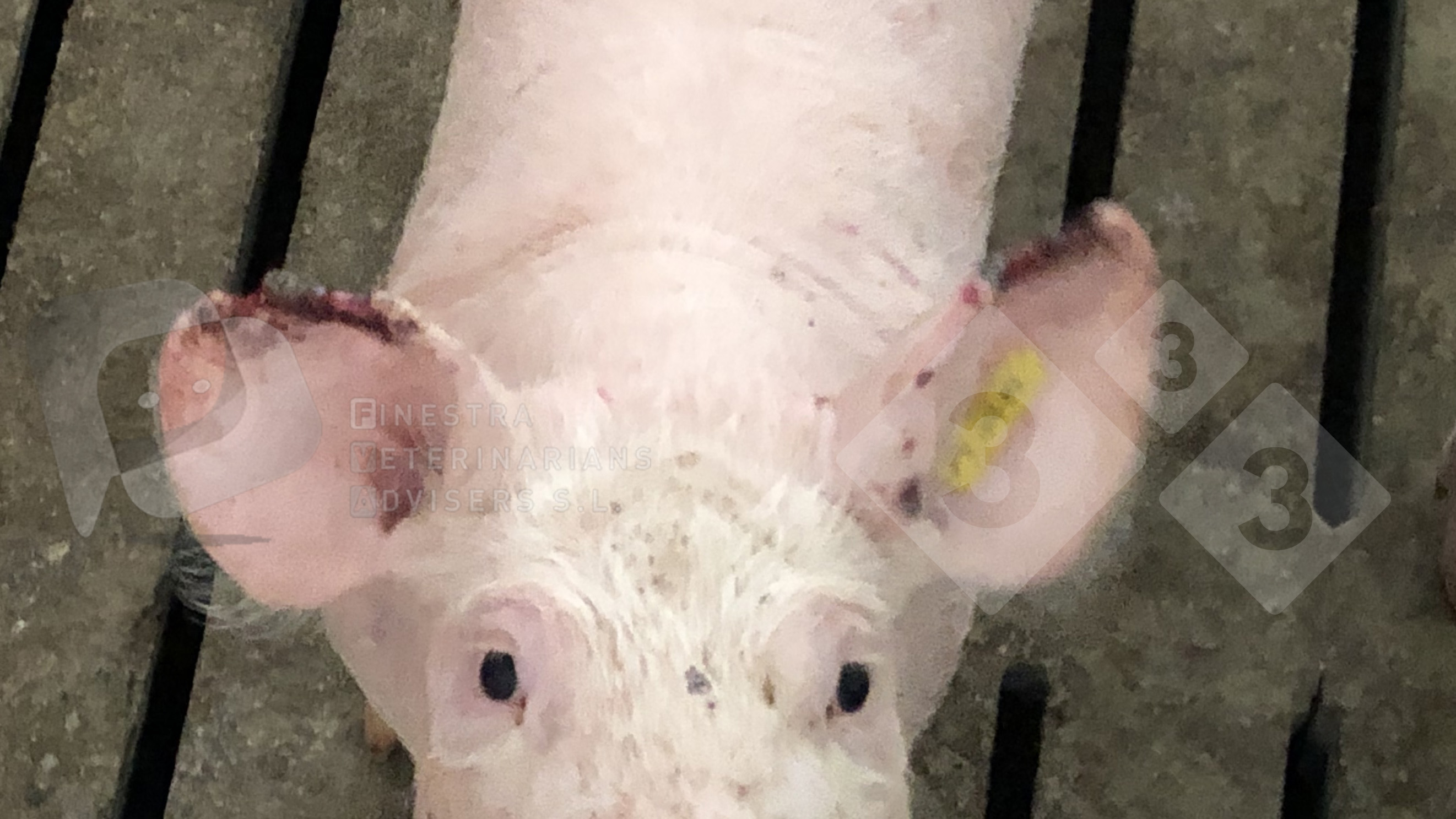 Necrose bilateral da ponta das orelhas. O aparecimento deste processo, bilateral ou unilateral, é frequente. Apresenta-se de forma aguda, iniciando-se com casos esporádicos, para continuar a aumentar até se generalizar por vários parques e pela maioria dos animais nos parques afectados em poucos dias.