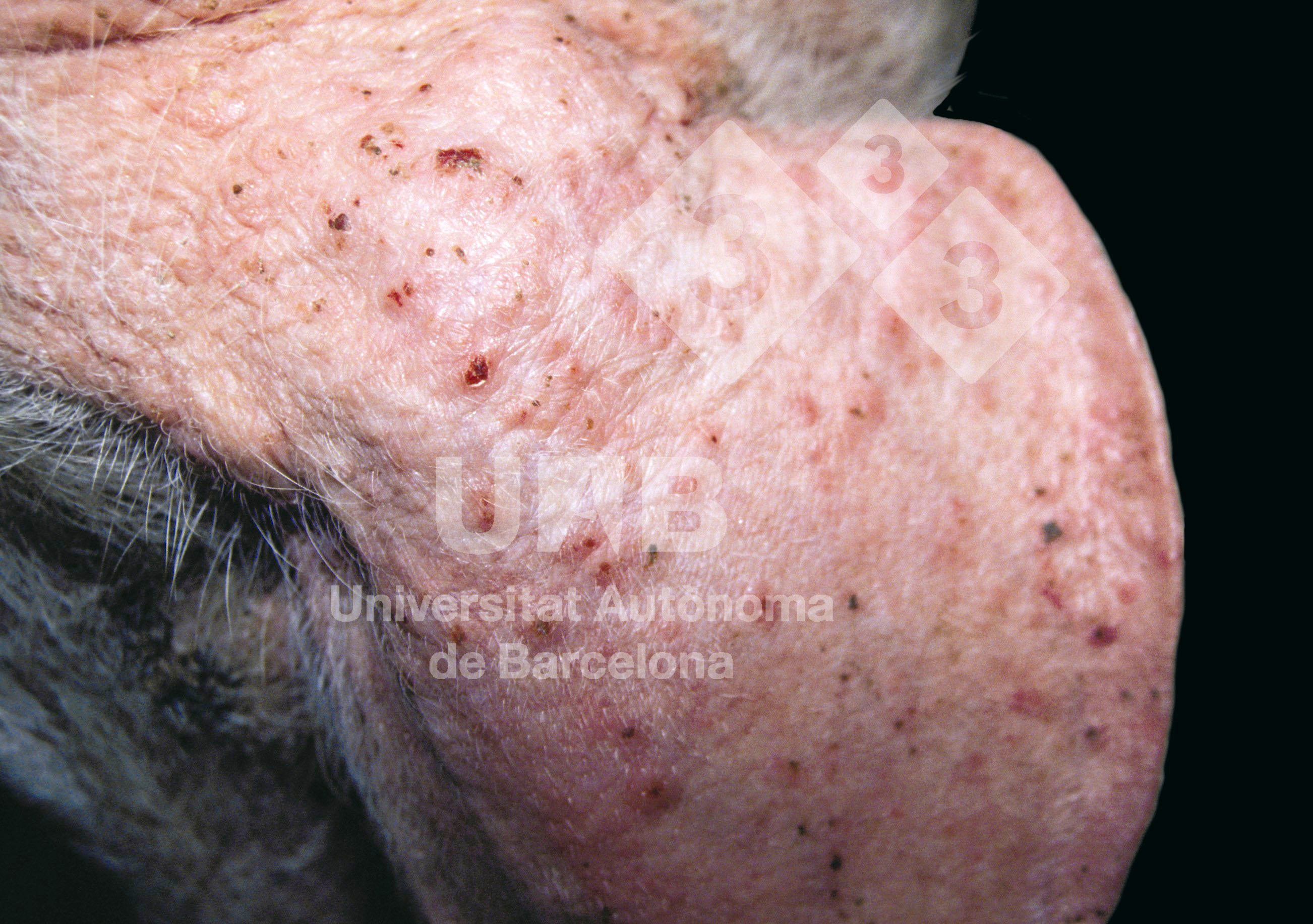Estas lesões multifocais, encarnadas, discretas e ligeiramente elevadas denominam-se pápulas e em geral associam-se às picadelas de insectos. As lesões cutêneas de mal rubro são eritematosas e em forma de diamante e as de PDNS têm áreas necróticas e crostas.