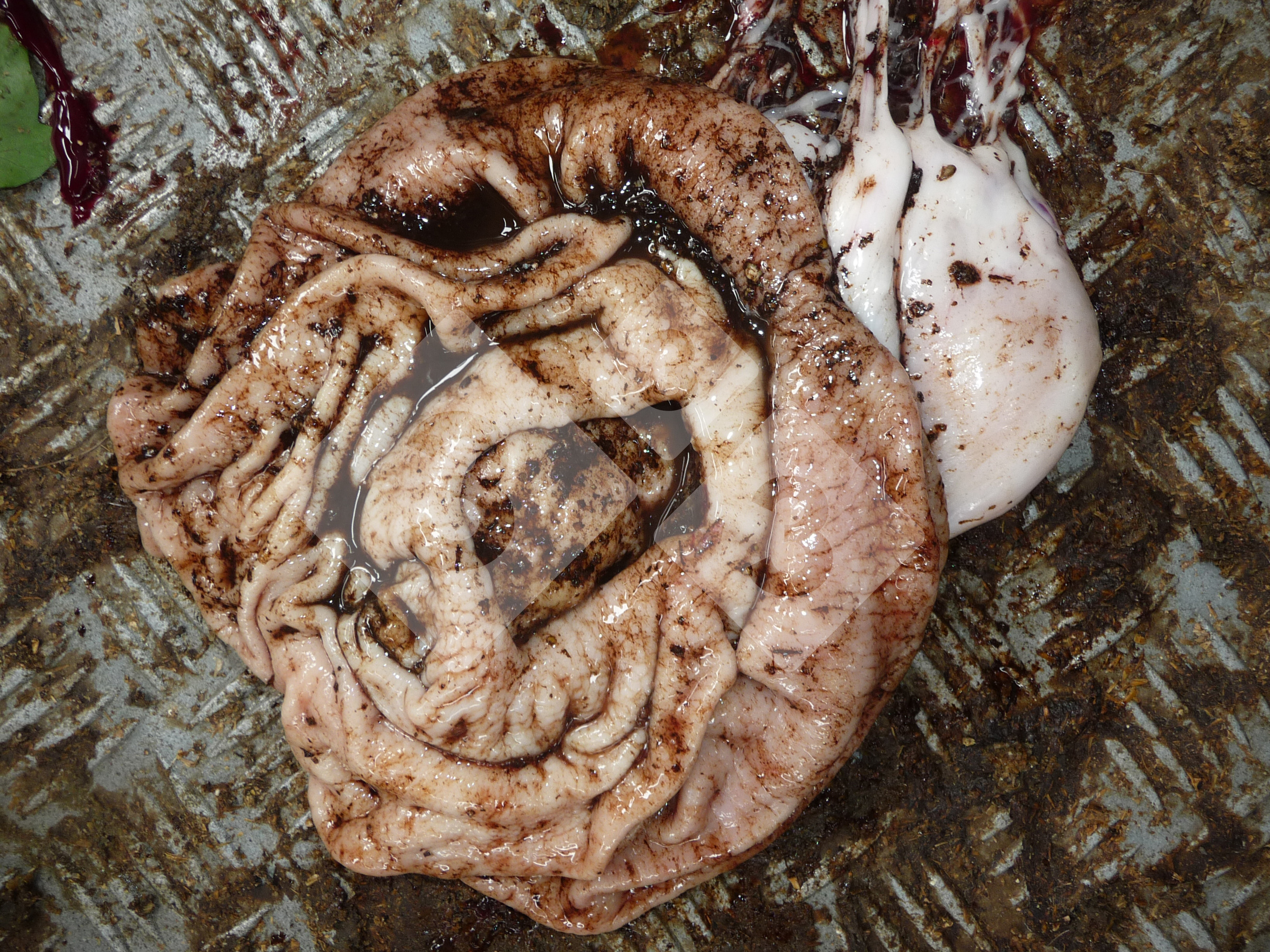 A ulceração gástrica da pars esofágica é notória no porco. A causa não é clara: o helicobacter suíno, Helicobacter suis, está presente no estômago e é capaz de provocar gastrites e úlceras. Outras bactérias fermentam hidratos de carbono, produzem ácidos orgânicos e predispõem a pars esofágica à ulceração. A pneumonia e a infecção pelo nemátodo Hyostrongylus rubidis podem predispor às úlceras gástricas. A nutrição pode ter um papel importante nesta condição (moenda excessivamente fina). Factores stressantes como o transporte, inanição, mistura de animais e sobredensidades, também aumentam a incidência das úlceras gástricas em porcos. As úlceras podem permanecer abertas e a ruptura de vasos sanguíneos pode causar a morte por hemorragia. A cura pode acontecer em qualquer etapa, mas ficam sempre cicatrizes.