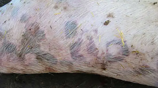 Este leitão desmamado tem lesões não-pruríticas na pele. Qual é a causa desta lesão?