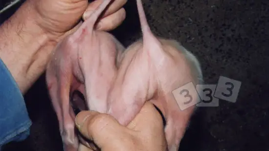 Leitão recém-nascido que não se consegue manter em pé para caminhar. Qual é a causa mais provável desta lesão?