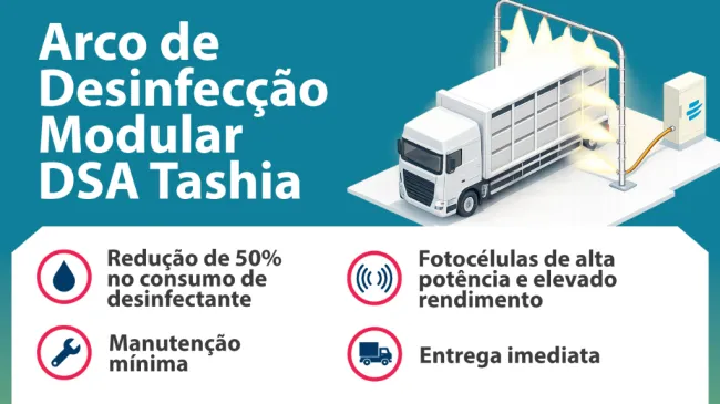 Os arcos de desinfecção evitam a propagação de doenças transmitidas pelo contacto com veículos que possam ter sido contaminados noutras explorações ou instalações externas (fábricas de rações, matadouros, etc.).