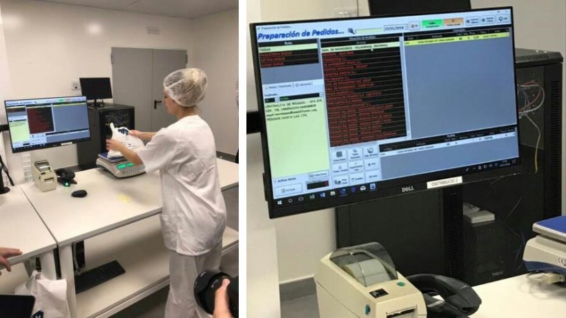 Na zona de preparação de pedidos voltamos a ver a combinação do programa de gestão com soluções práticas que estão pensadas para que o sistema flua de forma rápida e eficiente. Os pedidos vão-se organizando de acordo com a rota e o sistema controla que o número de doses e o seu destino seja o sempre correcto. Como no resto da unidade, a zona de armazenamento das doses que esperam para serem carregadas nos veículos de distribuição não só está impoluta, como está pensada e construída para que se mantenha impoluta.
