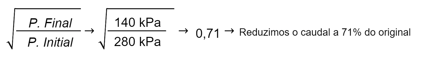 Por exemplo, se reduzirmos a pressão para metade, de 280 kPa para 140 kPa: