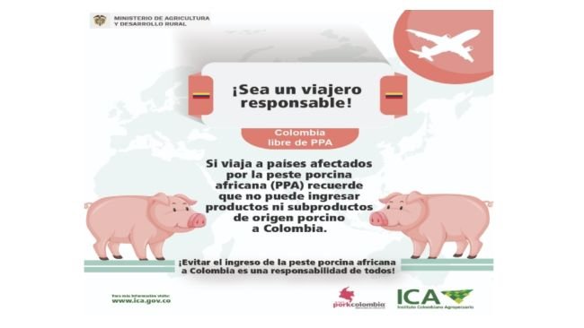 O Instituto Colombiano Agro-Pecuário como autoridade sanitária reforça medidas nos portos, aeroportos e postos fronteiriços para prevenir a entrada da Peste Suína Africana na Colômbia.