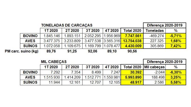 A produção de carne de porco deve crescer 3% em 2021, atingindo 4,25 milhões de toneladas em Peso de Carcaça Equivalente (CWE) e é esperado um aumento de 4% nas exportações de carne suína em 2021. A produtividade deve ficar praticamente igual à estimativa de 96 de 2020 quilogramas CWE por porco abatido. Em 2020, as exportações brasileiras de carne de porco aumentaram 36% em termos de volume e ultrapassaram 1 milhão de toneladas pela primeira vez na história do Brasil. Desse volume recorde de exportação, a China respondeu por pouco mais da metade do total das exportações de carne de porco. Analistas de mercado no Brasil acreditam que a procura de suínos e aves da Ásia permanecerá forte em 2021.