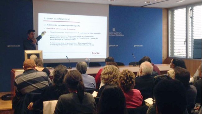 Un centenar de personas han asistido esta mañana a la jornada del DARP, en Barcelona, sobre la Adaptación de los mataderos a la normativa de bienestar animal y certificaciones, que ha contado con la participación como ponentes de representantes del Área Técnica de la Federación Empresarial de Carnes e Industrias Cárnicas (FECIC).