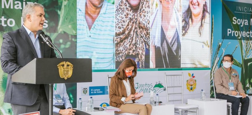 El presidente de la República, Iván Duque Márquez tocó la campana que dio inicio a la tercera Jornada de Negocios del programa 'Soya – Maíz: Proyecto País', que se llevó cabo en la sede de Agrosavia de Palmira (Valle del Cauca); iniciativa con la cual el Gobierno busca impulsar los cultivos del maíz y soja y disminuir las importaciones de estos y otros cereales.