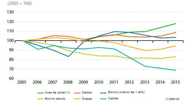 En 2015, a pesar de las ayudas al almacenamiento privado para la carne de cerdo, el precio siguió una disminución constante. En 2015, el índice de precios de la carne de cerdo disminuyó un 11,6% en comparación con 2014. Durante el período 2010-15, el índice disminuyó un 5,1%. El precio medio de los cerdos fue de unos 110 euros por 100 kg.
