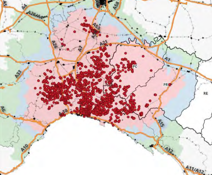 Las regiones afectadas incluyen Lombardía (provincias de Milán y Pavía), Piamonte (provincia de Novara) y Emilia Romagna (provincia de Piacenza).