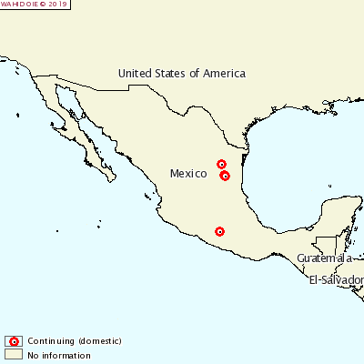 La OIE ha informado de la presencia serológica de la enfermedad de Aujeszky en 4 granjas porcinas de traspatio situadas en el estado de Tamaulipas y en otra en el estado de Guerrero. Los animales no presentaban signos clínicos.