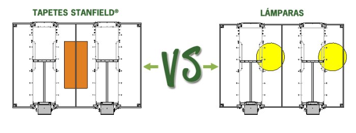 Estas recomendaciones no se pueden lograr con las lámparas. Para que las lámparas entreguen más calor hay que acercarlas más al piso, disminuyendo el área útil de calefacción. Y para tener una superficie más amplia de calefacción se debe subir la lámpara, disminuyendo su intensidad.