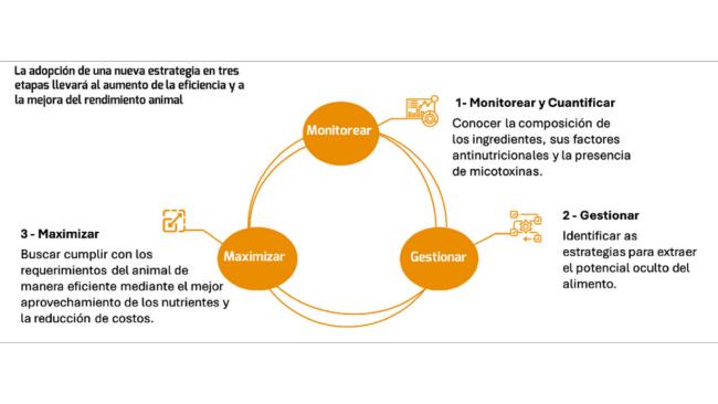 La transformación de los ingredientes en alimentos involucra puntos críticos de decisión. Con la creciente volatilidad en los precios, márgenes reducidos, variabilidad de las materias primas y la demanda creciente de ingredientes más sostenibles, estas elecciones se han vuelto aún más desafiantes. Para cumplir con las expectativas de rentabilidad en la producción animal, la formulación de una dieta requiere atención especial en la reducción de pérdidas de nutrientes y en la gestión eficiente de los riesgos asociados a micotoxinas. Adisseo ofrece un enfoque integral e innovador para superar estos desafíos. Esta estrategia, estructurada en tres etapas, se enfoca en el monitoreo de la calidad de los ingredientes, en la gestión del equilibrio de los nutrientes y en la maximización del potencial de las formulaciones. Respaldado por la vasta experiencia de Adisseo en el análisis y desarrollo de curvas NIR de ingredientes, así como por su portafolio completo de productos y herramientas de servicios, este enfoque promueve mejoras significativas en la eficiencia alimenticia y en el aprovechamiento de los nutrientes. Como resultado, impacta positivamente el rendimiento animal, amplía la flexibilidad en la formulación de dietas, mejora la retención de nutrientes y permite reducir el uso de ingredientes de alto costo, garantizando así una solución más económica y eficiente.