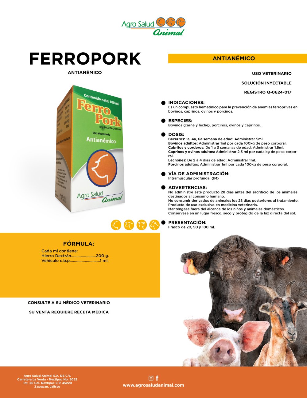 Es un compuesto hematínico para la prevención de anemias ferroprivas en bovinos, caprinos, ovinos y porcinos.