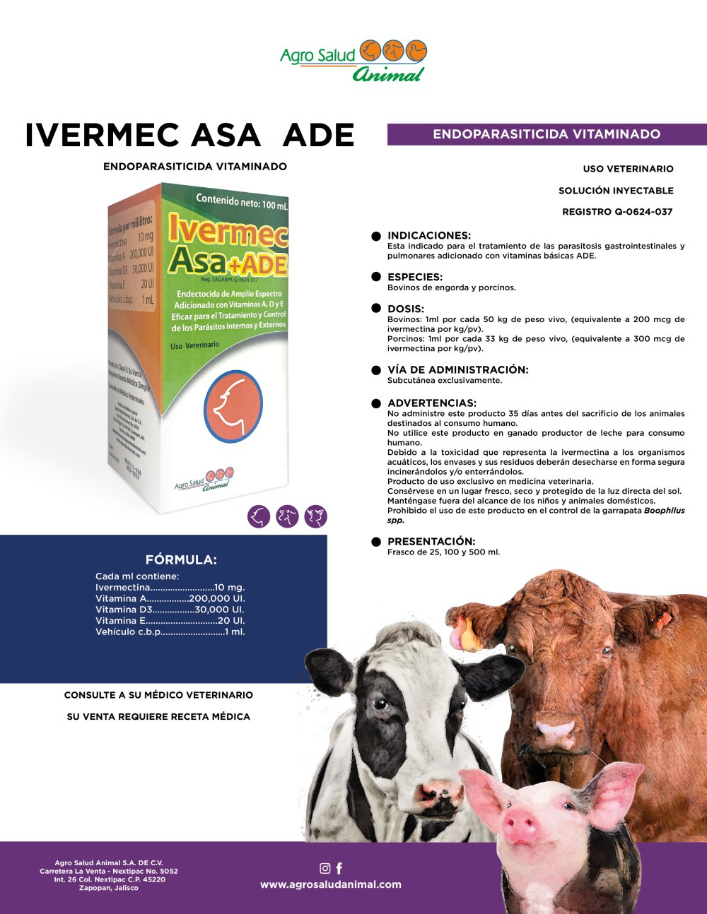 Dosis: Bovinos: 1ml por cada 50 kilos de peso vivo, (equivalente a 200 mcg de ivermectina por kg/pv).