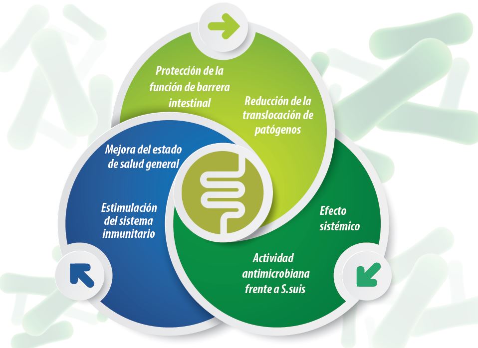 Por lo tanto, podemos concluir que asaGRAM+ es una herramienta efectiva en la estrategia de prevención contra S. suis cuando se aplica la dosis recomendada, pues su completa formulación garantiza la eficacia en el control de ciertas bacterias gram-positivo, así como la reducción de la translocación bacteriana, mejora del ambiente intestinal y óptima respuesta del animal frente un eventual desafío.