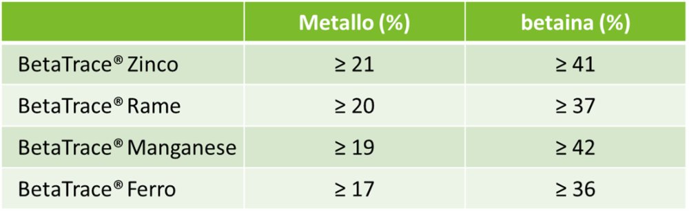 BetaTrace® è una fonte unica di minerali organici, in attesa di brevetto e progettata per tutte le specie, che combina betaina con zinco, rame, manganese o ferro. Questo complesso innovativo unisce due additivi essenziali. BetaTrace® utilizza la betaina come legante funzionale.