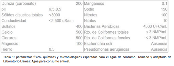 En la tabla 1 se detallan los parámetros físico- químicos y microbiológicos adecuados para el consumo:
