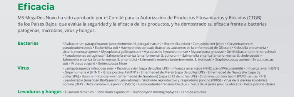 - Desinfecte el recinto con MS MegaDes Novo