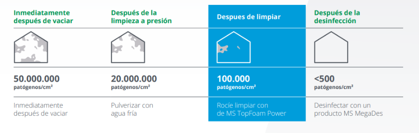 Elimina eficazmente la contaminación orgánica intensa (grasa, proteína, estiércol, alimento, orina e incluso depósitos ligeros de calcio)