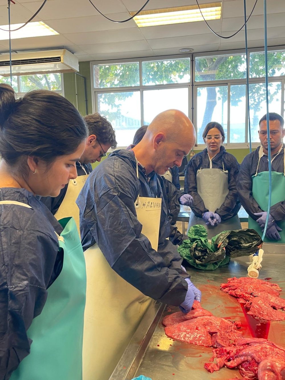 La sesión incluyó una parte práctica en la sala de necropsias, donde los alumnos pudieron aplicar lo aprendido puntuando lesiones de manera objetiva. Esta experiencia se diseñó para que comprendieran cómo la información obtenida en el matadero puede trasladarse a la granja como una herramienta de monitorización sanitaria y de apoyo en la toma de decisiones.