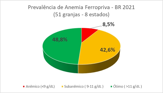 Em relação a Anemia Ferropriva, um conjunto de fatores que incluem a baixa reserva de ferro que os suínos apresentam ao nascer, o reduzido teor de ferro presente no colostro das porcas lactantes, além do crescimento acelerado do leitão, faz com que quase 100% dos leitões possam apresentar a deficiência de ferro caso não seja feita a suplementação. Devido a estas características inerentes dos suínos é necessário que seja realizada a suplementação injetável de ferro, quando esta não é realizada de maneira correta o leitão pode apresentar anemia clínica ou subclínica, o que leva a um pior desempenho durante sua vida produtiva, com ganho de peso reduzido e pouco desenvolvimento muscular, além de quadros de fraqueza, apatia e uma maior susceptibilidade às infecções ao longo da vida produtiva.